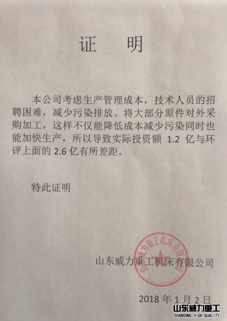 建設(shè)單位:山東威力重工機床有限公司法人代表:楊靜